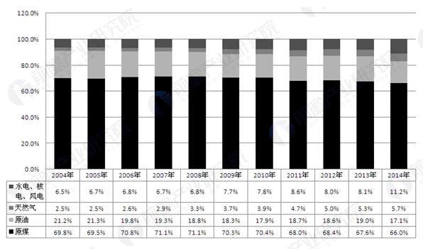 數據顯示,2003-2014年間,盡管中國能源消費總量中煤炭所占比重在下降,天然氣以及新型能源所占比重在上升,但與世界其他國家相比,天然氣及新型能源所占比重仍處在較低的水平。以天然氣為例,2010年,有16個國家能源消費結構中天然氣的比例占到50%以上,而我國2014年天然氣的比重僅為5.7%,能源結構仍以原油和原煤為主。