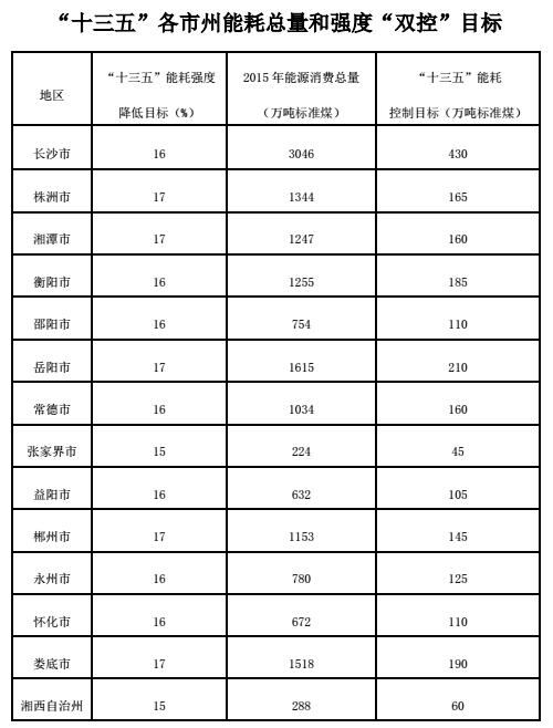 湖南省"十三五"節能減排綜合工作方案