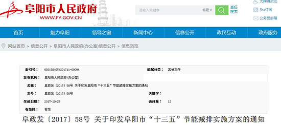阜陽市“十三五”節(jié)能減排實(shí)施方案