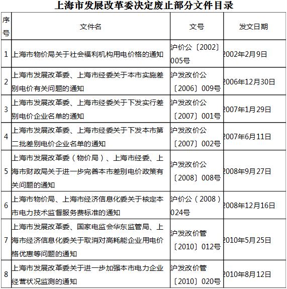 注意!上海發(fā)改委廢止8個與電價有關(guān)文件