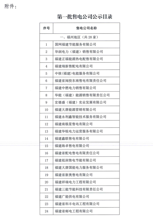 福建電力交易中心12月18日發(fā)布了關(guān)于公示2017年第一批受理注冊售電公司相關(guān)信息的公告,本次一共公示53家售電公司,從第一批售電公司的公布情況來看,福州地區(qū)占比最大,一共有28家,其次為廈門地區(qū)有13家,此外漳州地區(qū)有3家,泉州地區(qū)有3家,三明地區(qū)1家,南平地區(qū)1家,寧德地區(qū)4家。公示期為2017年12月18日至2018年1月17日,時(shí)間1個(gè)月。