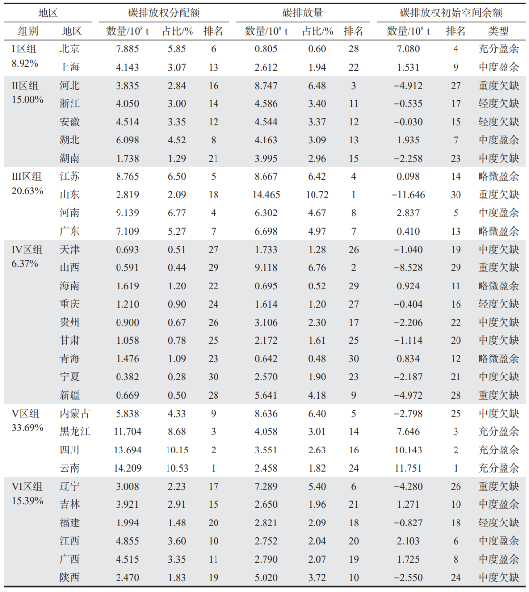 3.1中國碳排放權區域分配及初始空間余額