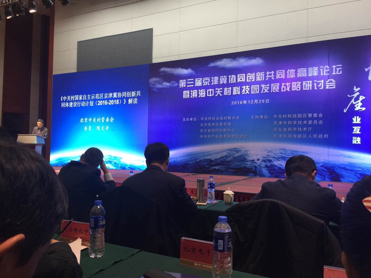 本次會議盛況空前,座無虛席,聚集了眾多天津市領導親臨參與,由科技部戰略研究院原常委副院長王元、天津市科委主任陸文龍、濱海新區區長張勇、河北省科技廳副廳長張永強等發表了主題演講,同時由中關村管委會副主任宣鴻解讀了《中關村國家自主示范區京津冀協同創新共同體建設行動計劃(2016—2018)》,并主持《發揮中關村節能環保技術優勢推進京津冀傳統產業改造升級實施方案》發布儀式。