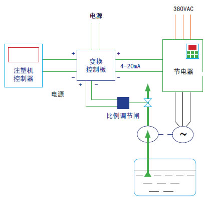 * 控制系統完備,讓您無任何后顧、放心的使用:保留注塑機油泵馬達原有Y/△啟動運行不變;若節電運行系統需要停機,可馬上切換到原來系統中運行,不影響生產;